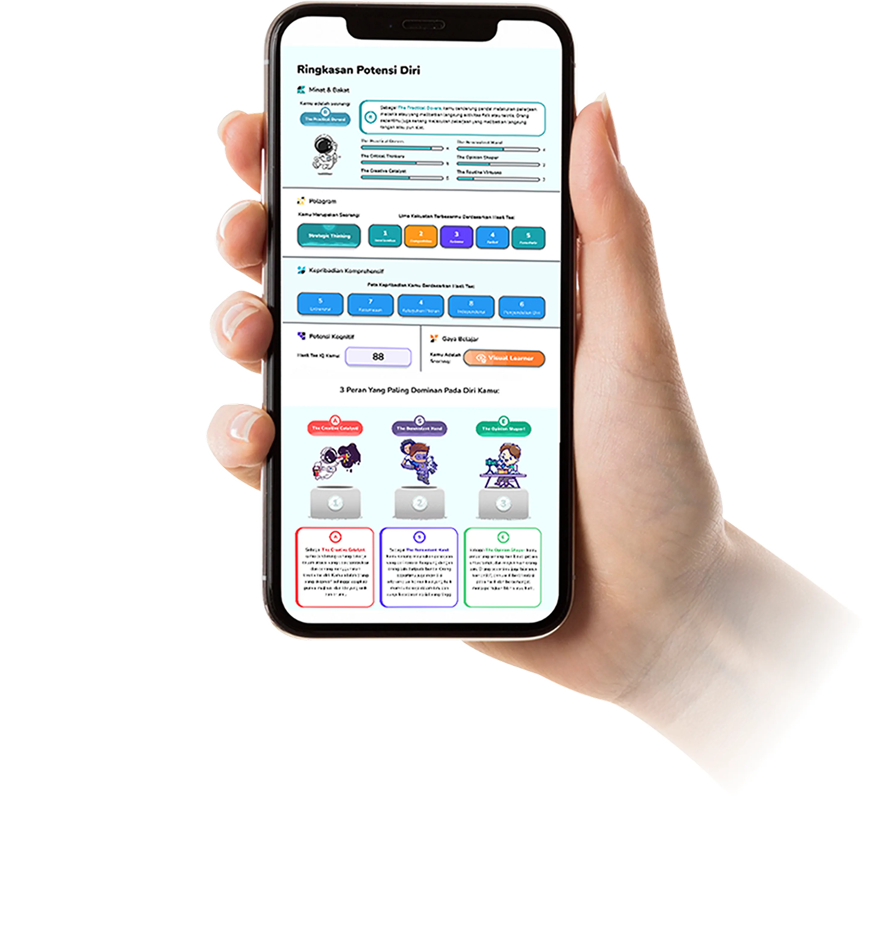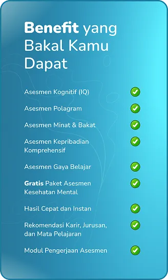 Ikuti tes IQ, minat karier, kepribadian, dan kesehatan mental dalam satu platform.
