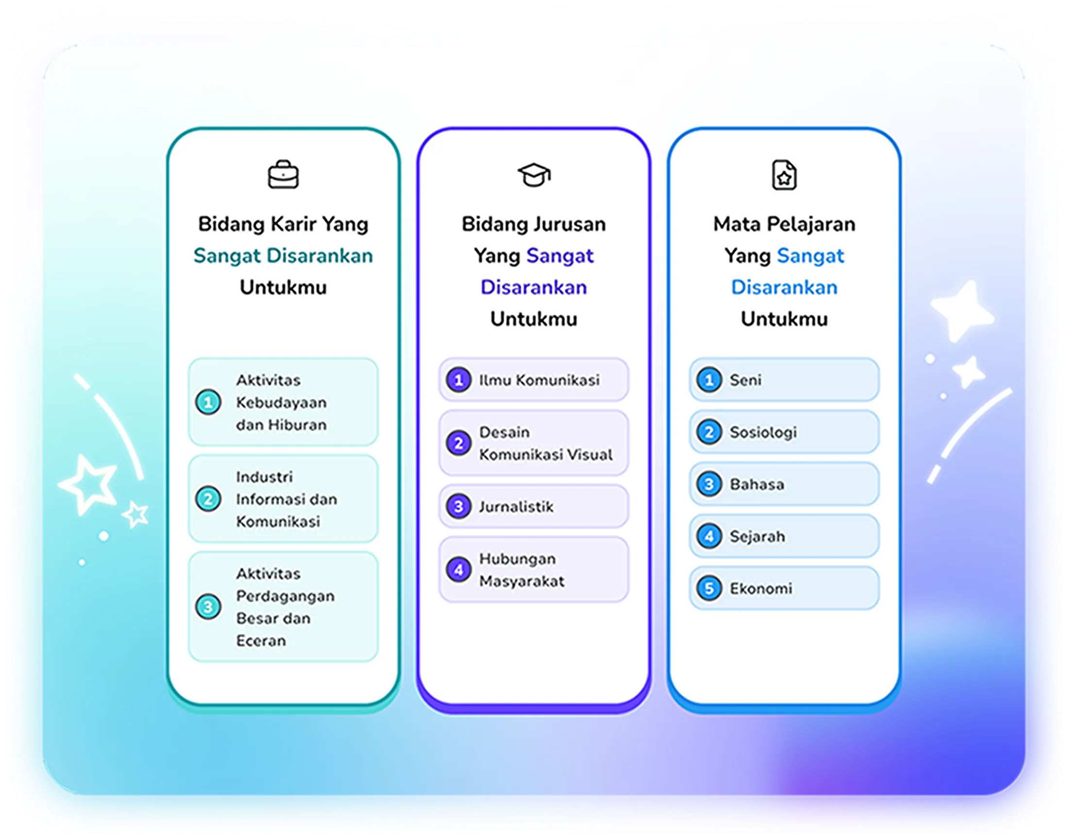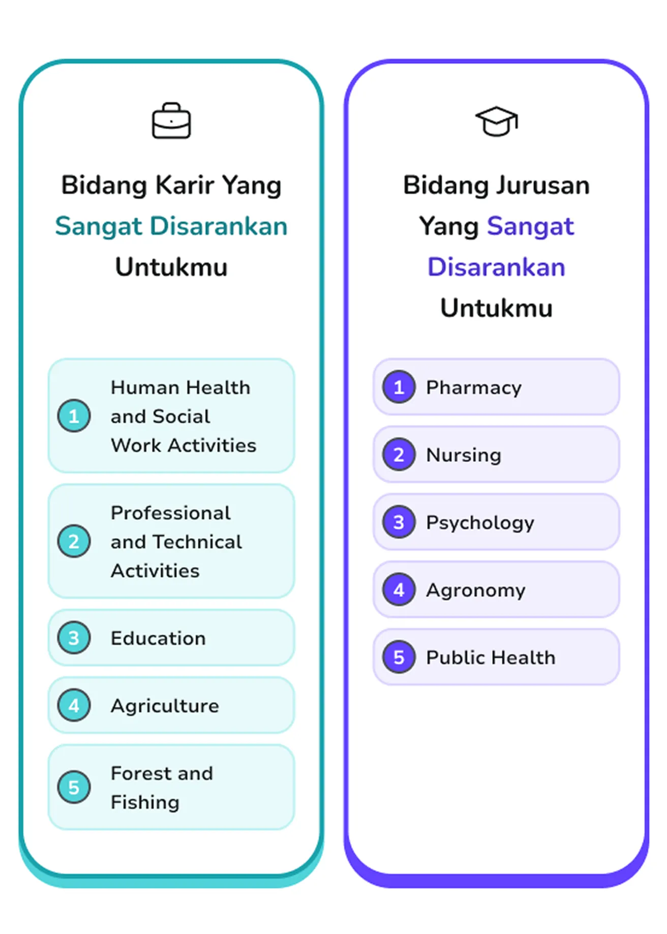 Temukan jurusan dan profesi ideal berdasarkan potensi, minat, dan kepribadianmu.